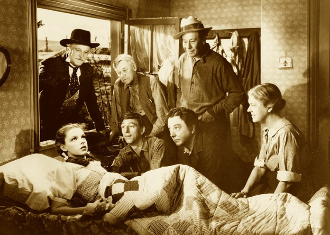 Judy Garland awakens for her dream in “The Wizard of Oz.”