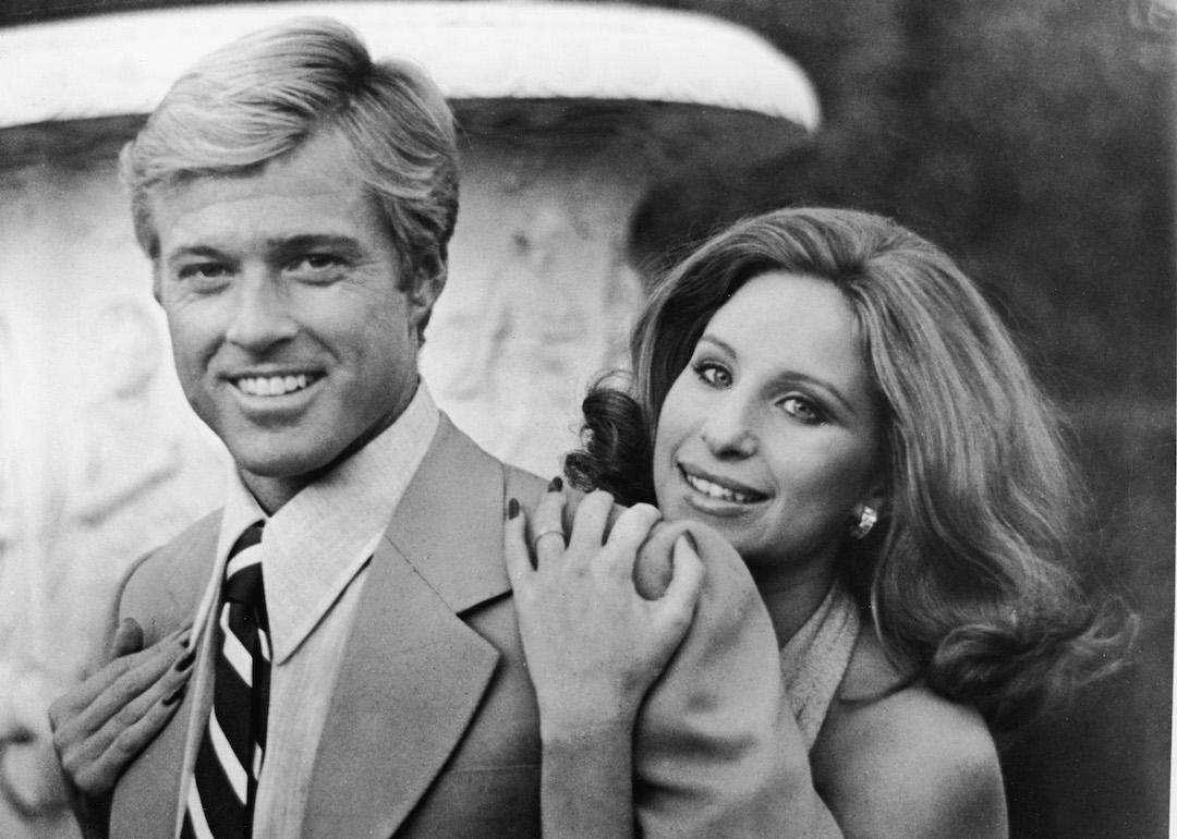 Barbra Streisand hugs Robert Redford from behind in this publicity still from the movie ‘The Way We Were.’