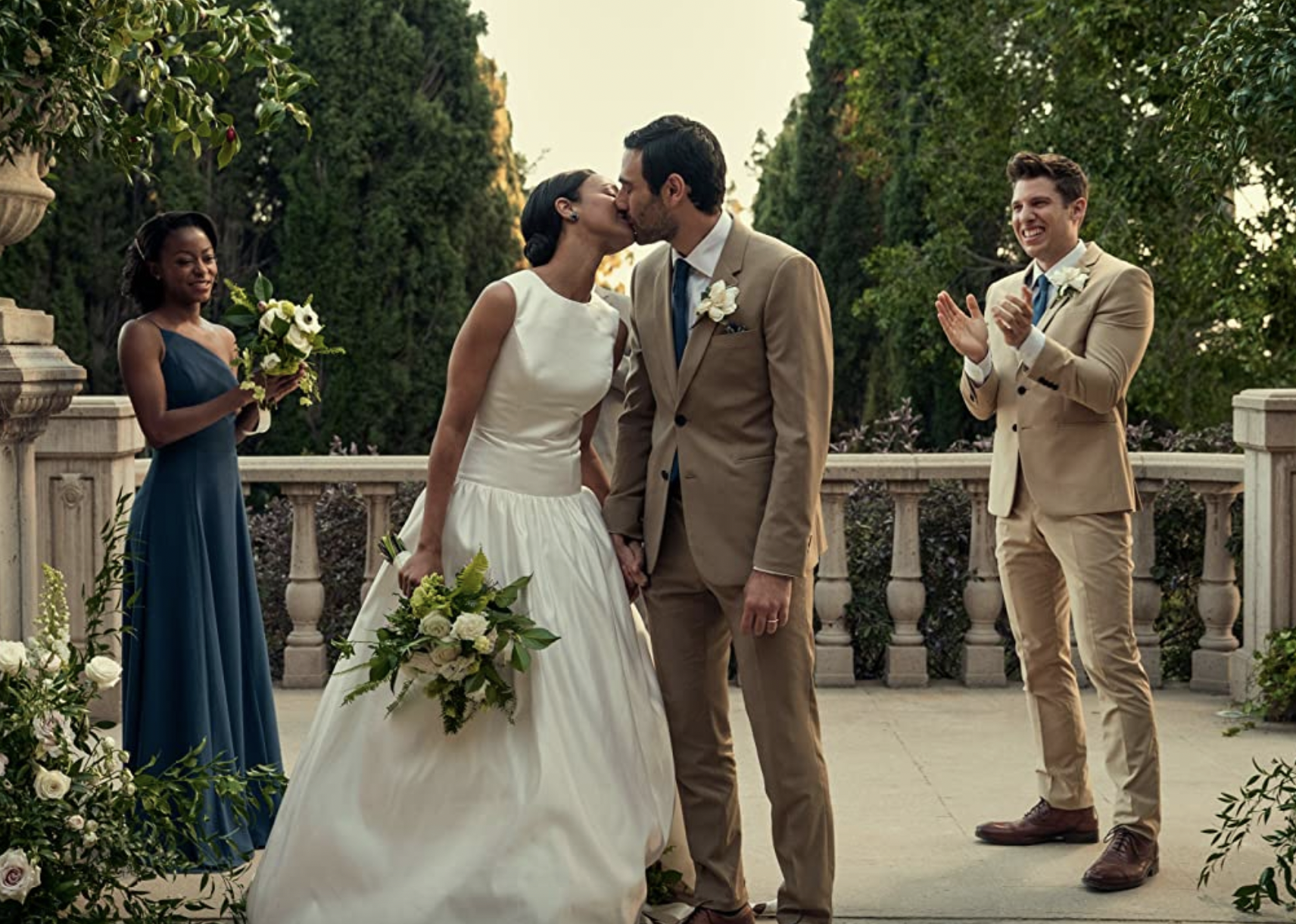 Zoe Saldana, Danielle Deadwyler, Lorenzo Pozzan, and Eugenio Mastrandrea in “From Scratch”.
