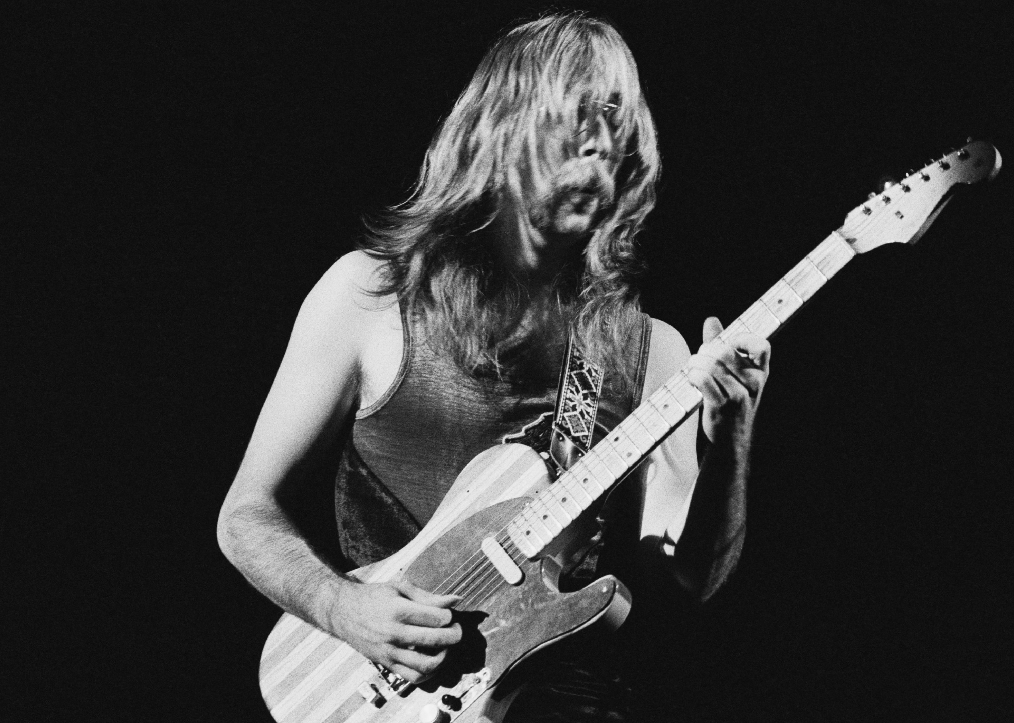 Guitarist Jeff ‘Skunk’ Baxter performing with Steely Dan at the Rainbow Theatre in London.