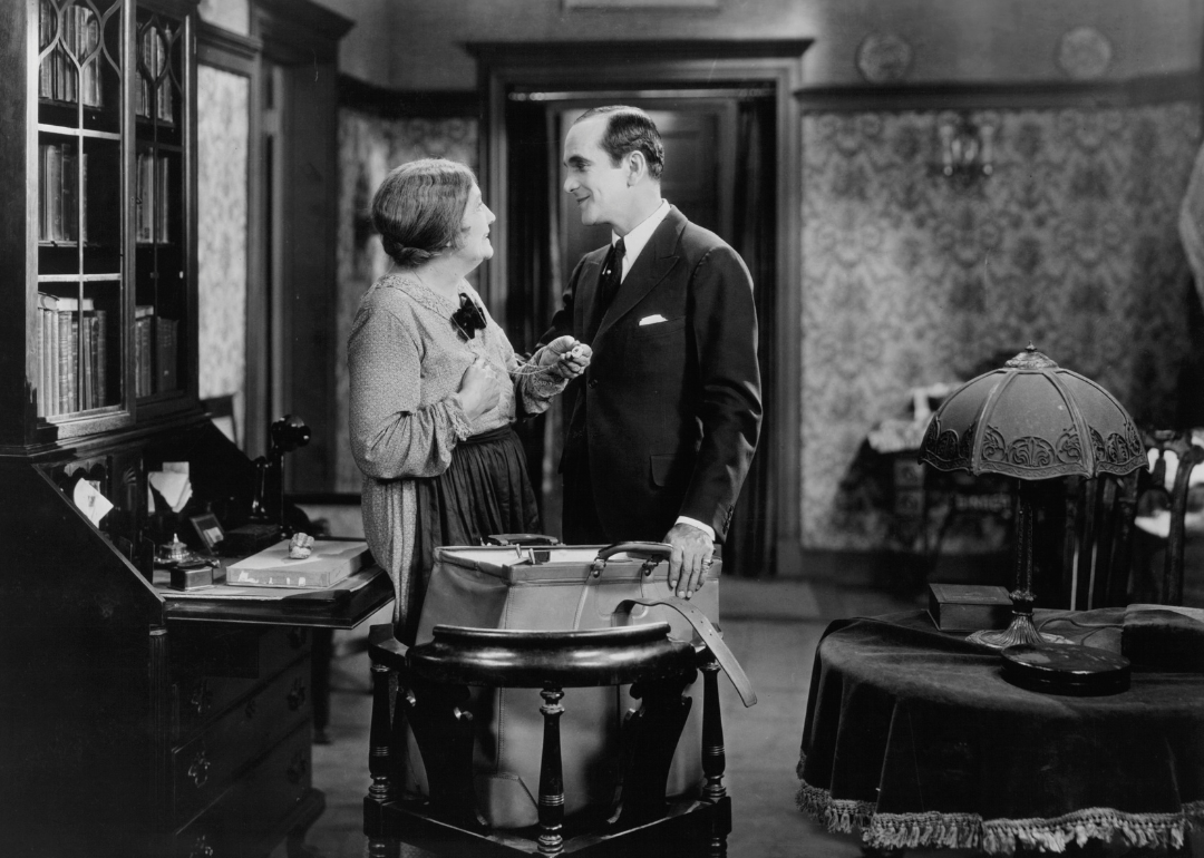 Eugenie Besserer and Al Jolson speaking in the parlor in a scene from the film ‘The Jazz Singer.’