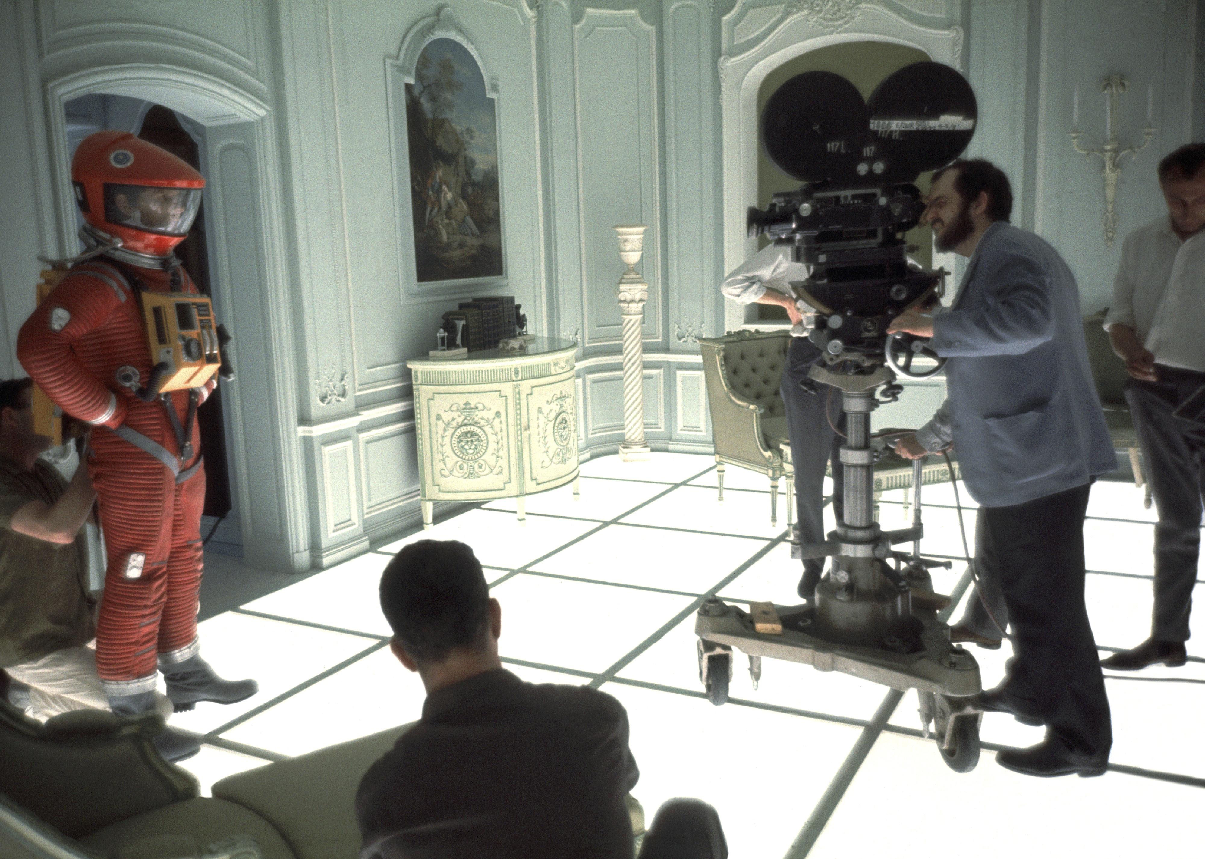 Film director and screenwriter Stanley Kubrick finds his shot on the set of ‘2001: A Space Odyssey’.