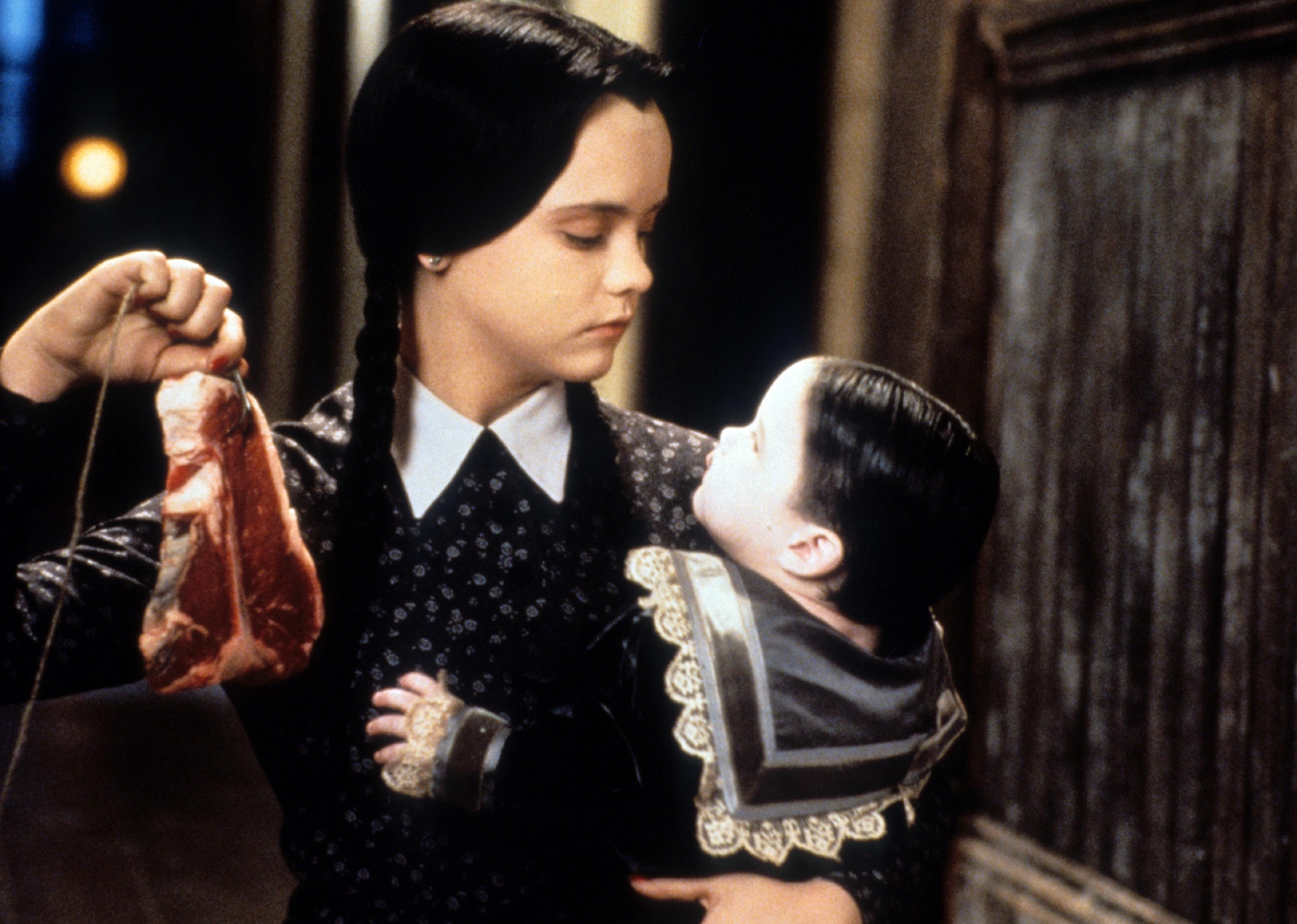 Christina Ricci dangling meat in a scene from ‘Addams Family Values’.