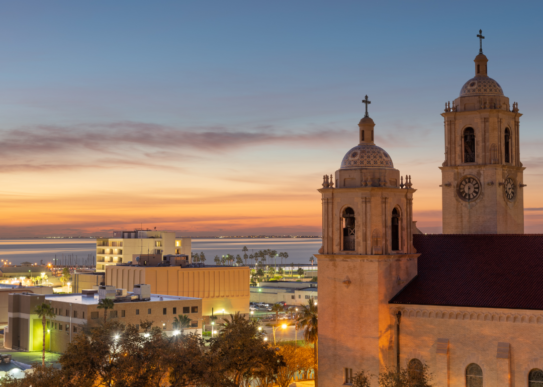 A view of the Corpus Christi Cathedral at sunset.