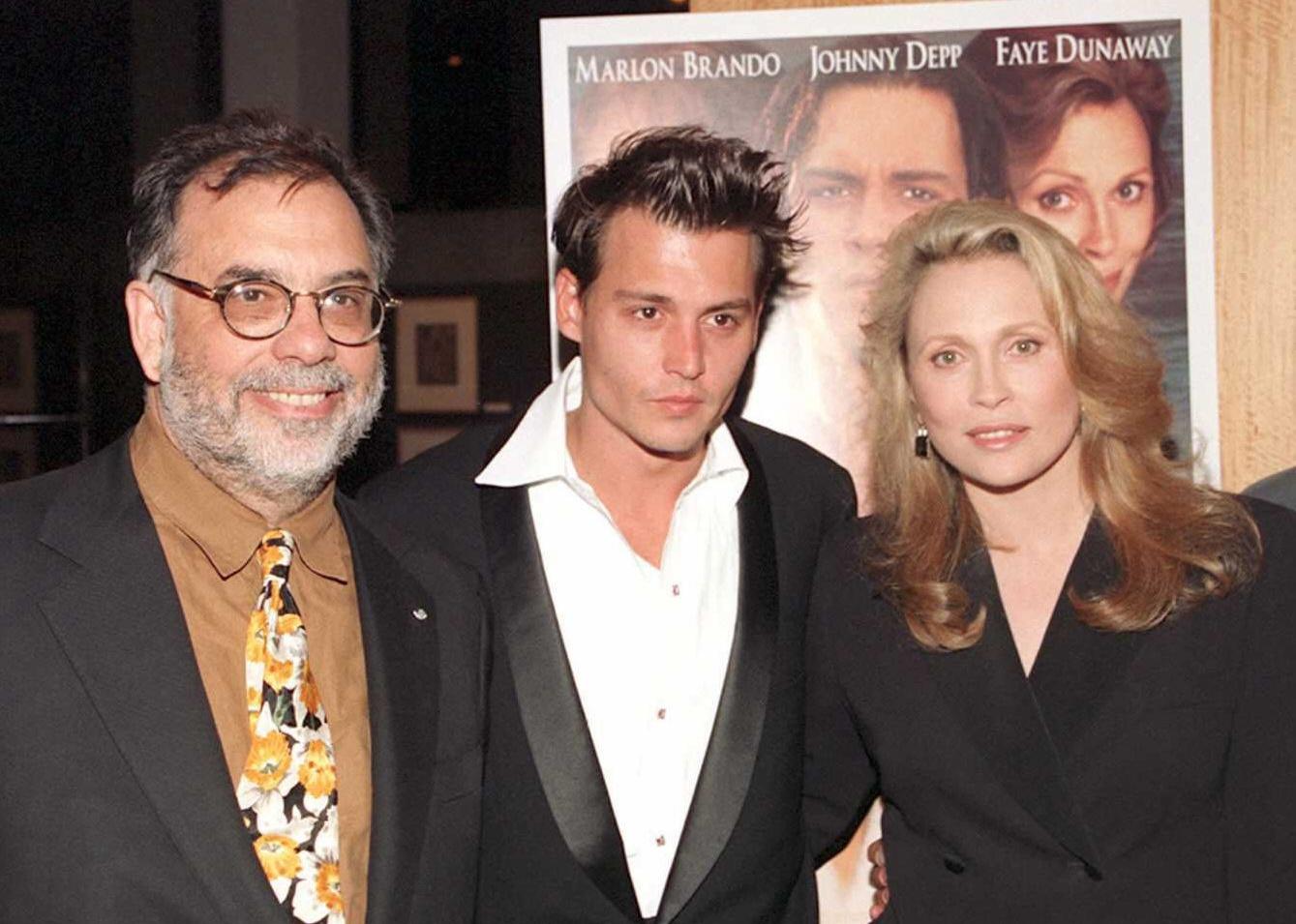 Producer Francis Ford Coppola poses with Johnny Depp and Faye Dunaway at the premiere of “Don Juan DeMarco”.