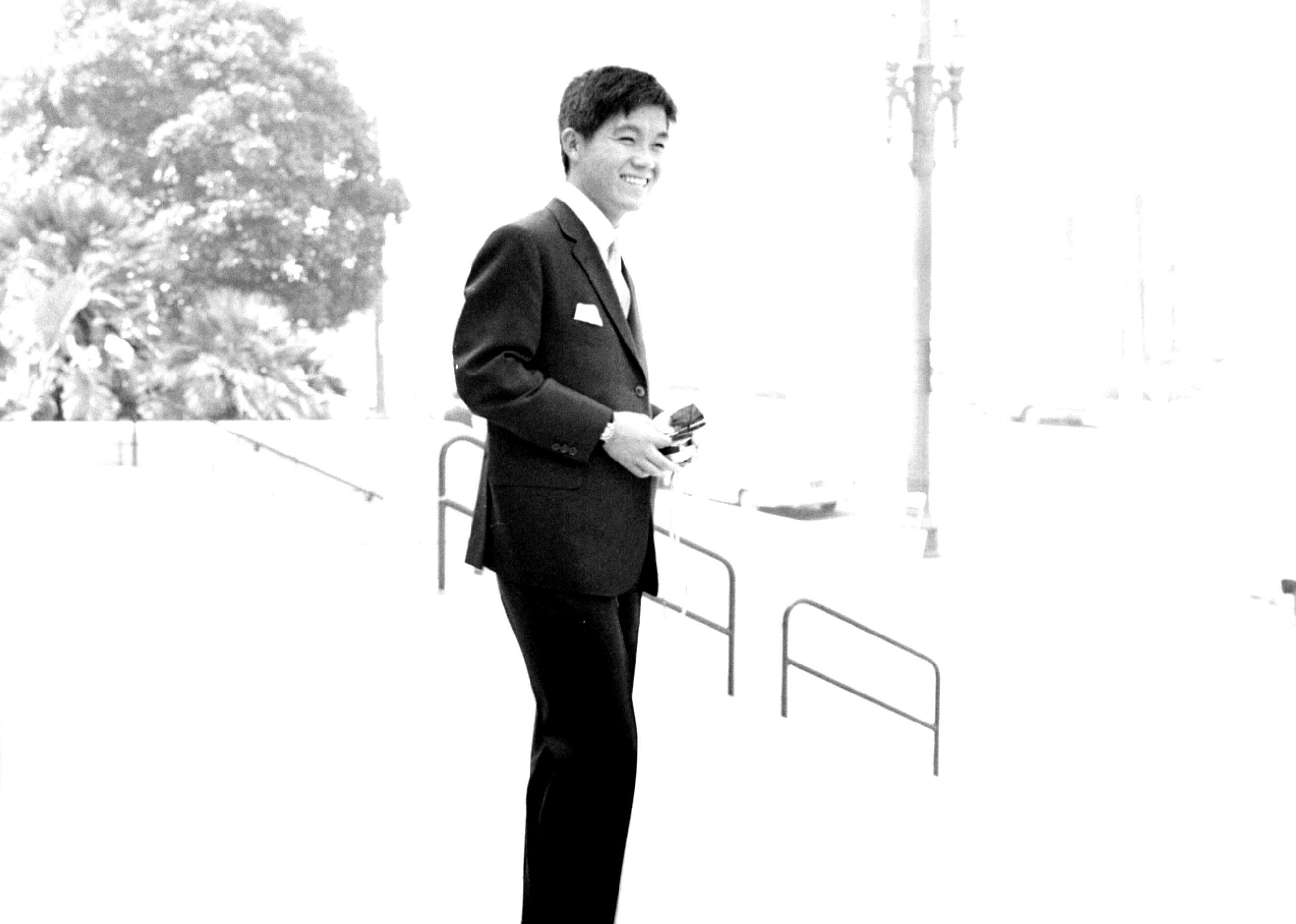 Photo of Kyu Sakamoto in a suit.