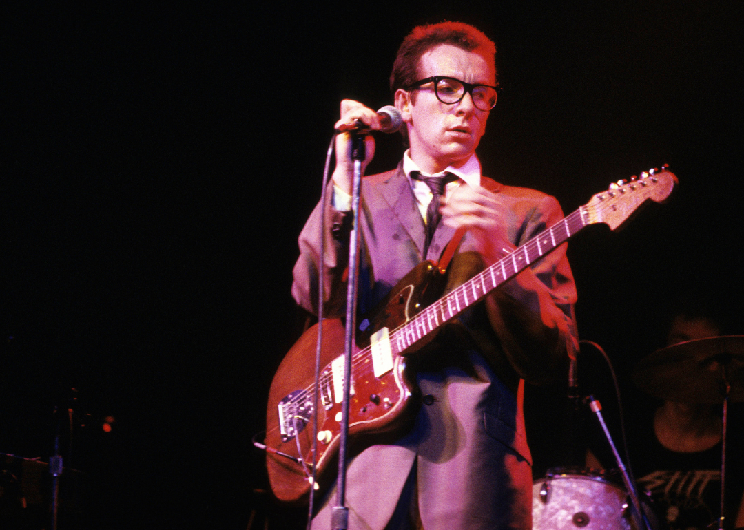 Elvis Costello performing onstage.