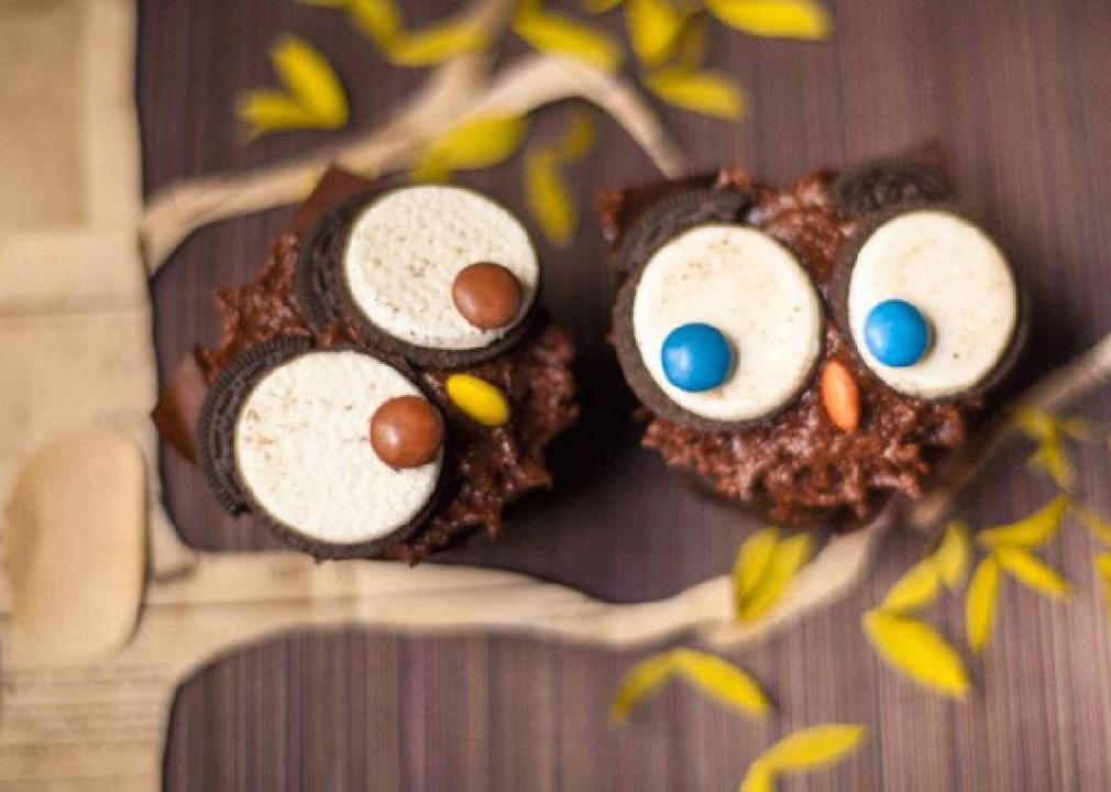 Follow this recipe to make homemade cupcake batter and icing, although if that’s scary, substitute a boxed mix and frosting to make things easier. These owls become lifelike in the decorating process, with opened sandwich cookies creating the large eyes and brown candy-coated milk chocolate pieces as irises. Drop a vertical candy piece in the middle for a beak, and a dessert that’ll be a hoot to eat.