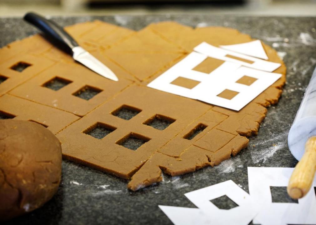 Time, patience, and a small list of ingredients create this perfect Halloween holiday party centerpiece. While homemade cinnamon cookie dough acts as the house foundation, upside-down ice cream cones create rooftops, and chocolate candy kisses become a sugary siding. As for landscaping, crushed Oreo cookies and candy pumpkins make up a perfect lawn of dirt that is fine for kids to eat just this once.