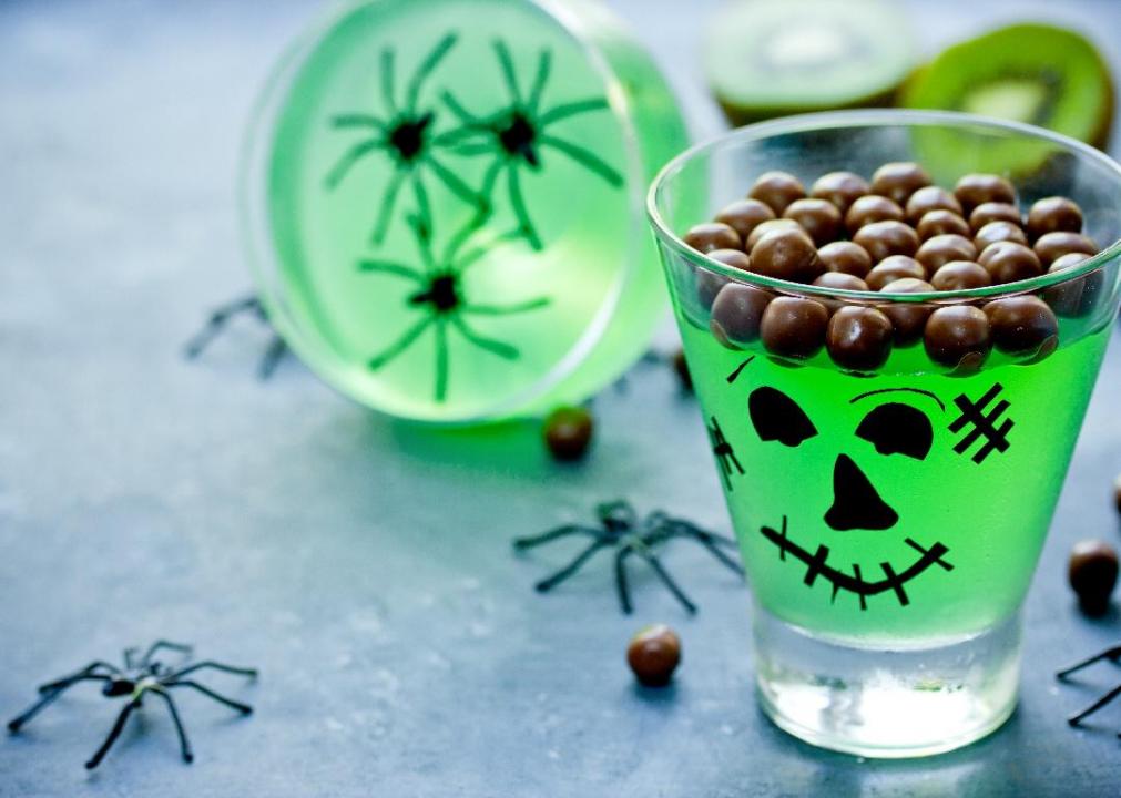 Grape and lime gelatins carefully poured together create the body of this mini-Frankenstein, while little licorice bolts and decorating gel bring it to life. Take them to the next level by substituting boiling tonic water and placing them under a blacklight—watch the quinine in the water glow in the dark.