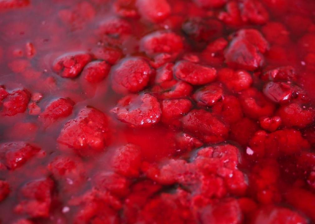 To begin, make a red velvet cake according to the box, and split into two pans. Concoct the blood in a small saucepan using water, corn starch, and corn syrup, with vanilla and red food coloring added after removing from heat. When the cakes have cooled, carefully cut the domes off and place a layer of blood between them before stacking and frosting. Finish with a plastic knife or cleaver for extra effect.