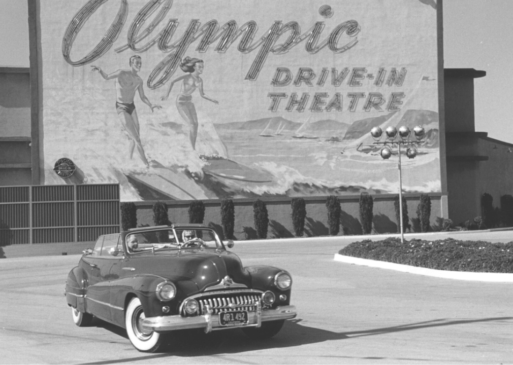 Nothing captures LA’s endless summer vibes quite like this picture of two women steering their convertible around a sign advertising one of the city’s many year-round outdoor theaters.