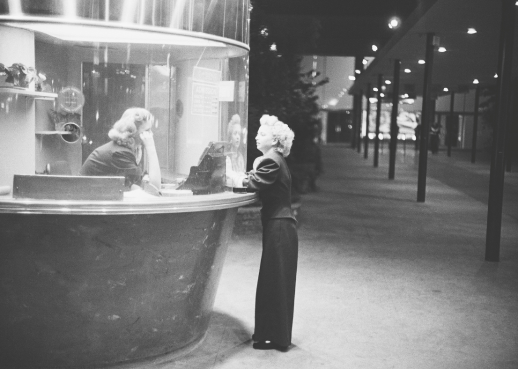 Most folks are familiar with Grauman’s Chinese Theater, but far fewer know about Grauman’s first foray into the movie palace world—the Egyptian Theater. Built in 1922, and the site of the very first movie premiere, the theater is now owned by Netflix (which is giving it a long overdue restoration). Here a woman buys a ticket at the location’s old outdoor box office.