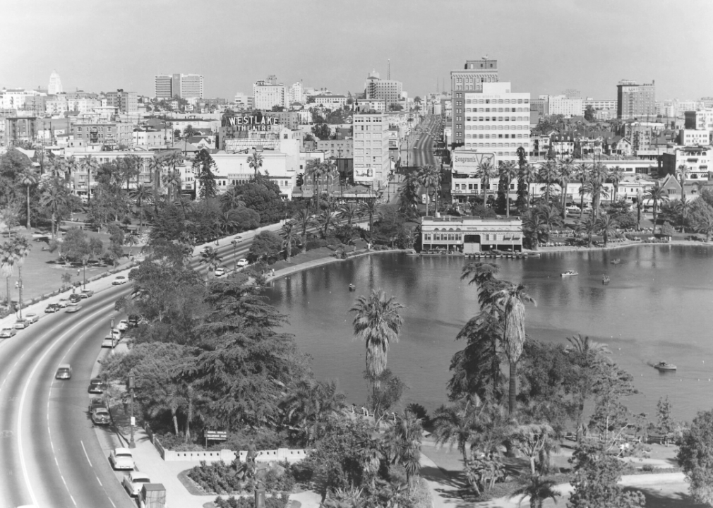 MacArthur Park (whose lake is pictured here) has long been a center of LGBTQ+ life in Los Angeles. In the 1950s, it was a popular cruising location, and one such encounter (that went horribly wrong) sparked a legal case that got national attention.
