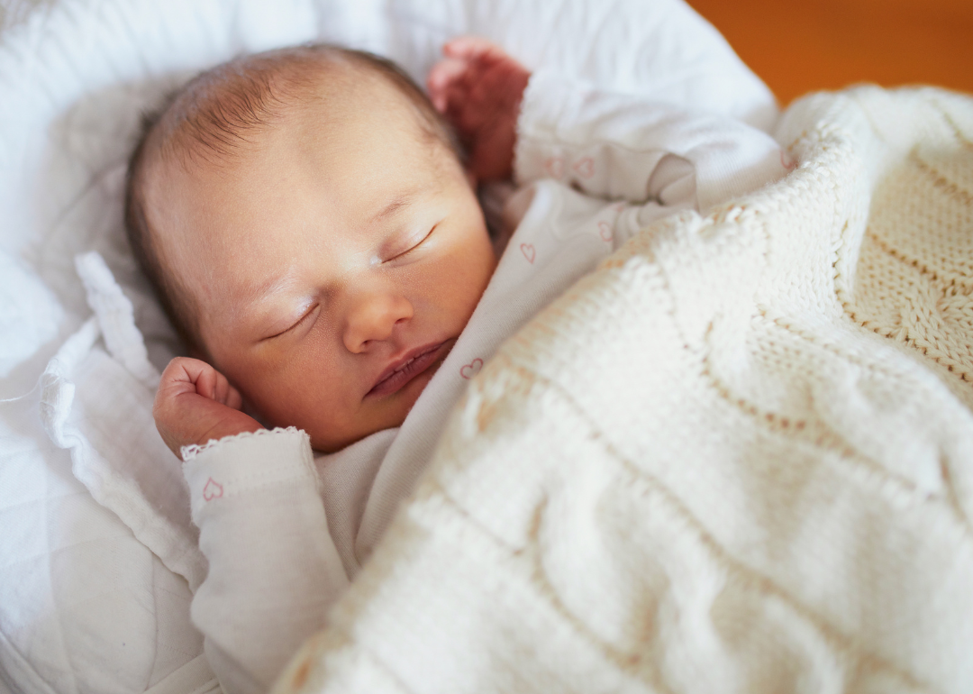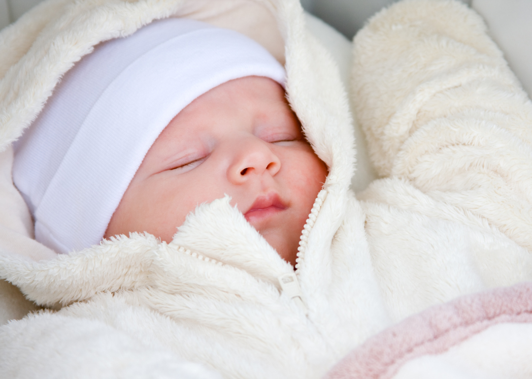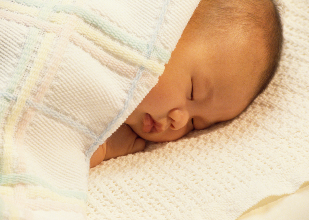 A sleeping baby wrapped in a blanket.