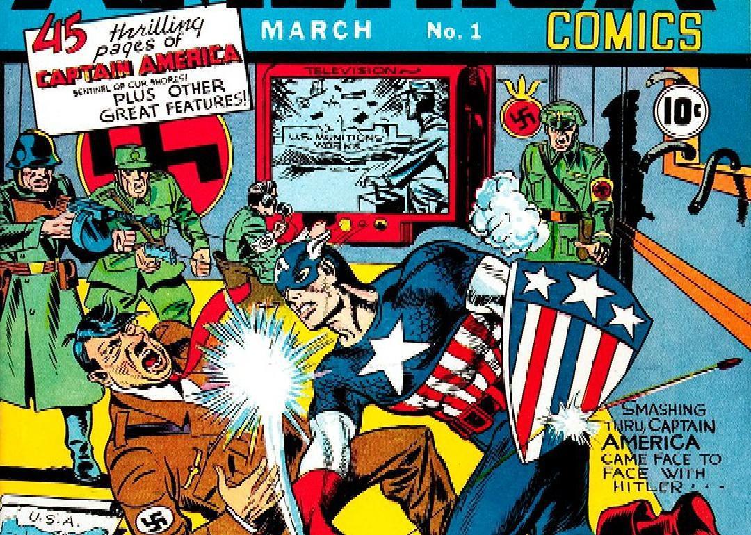 Four years before World War II had even ended, Captain America’s first appearance showed him punching Hitler on the cover of the comic book. It was controversial, which helped sales; the comic flew off the shelves as fast as it arrived.