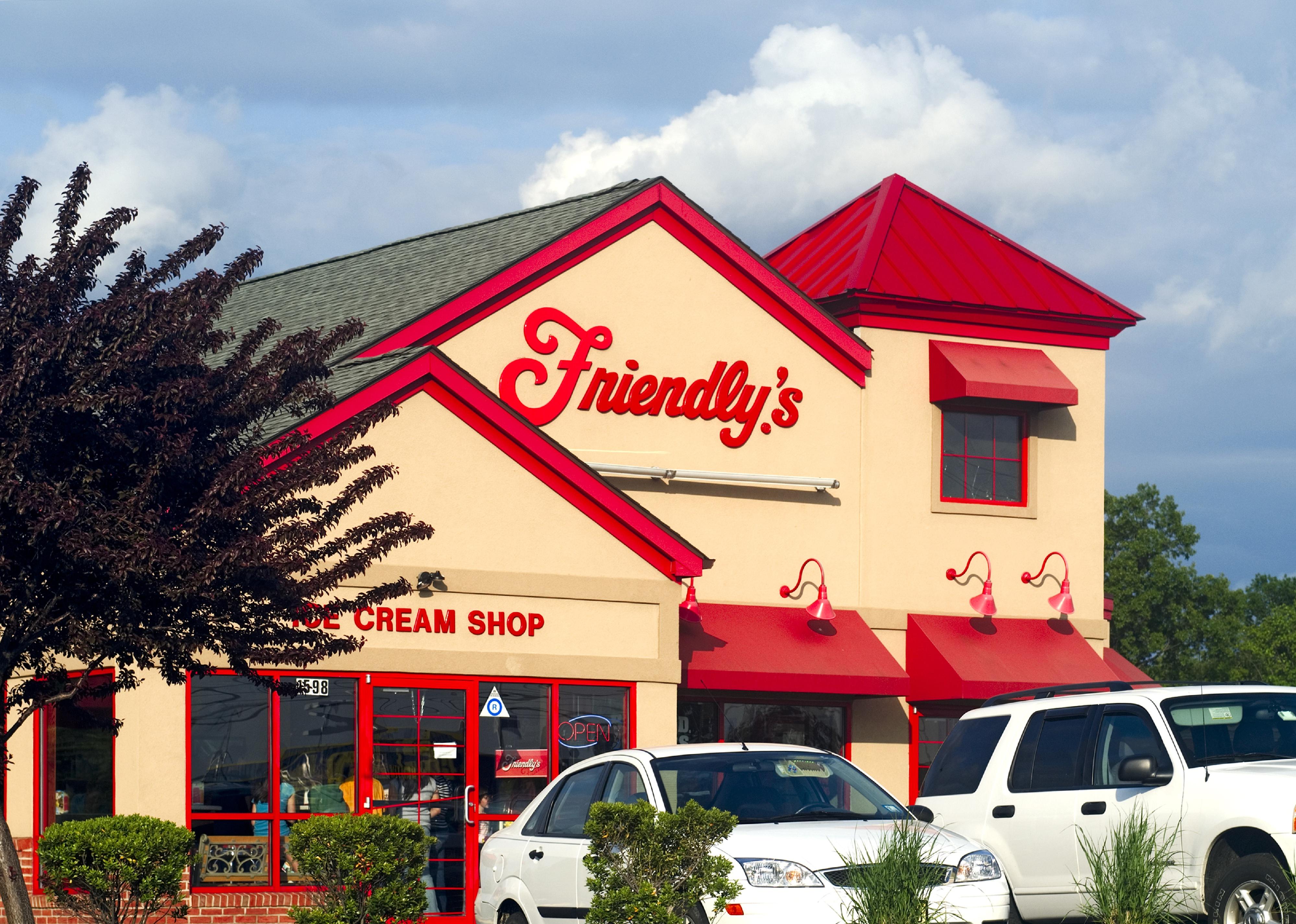 The exterior of a Friendly’s restaurant.