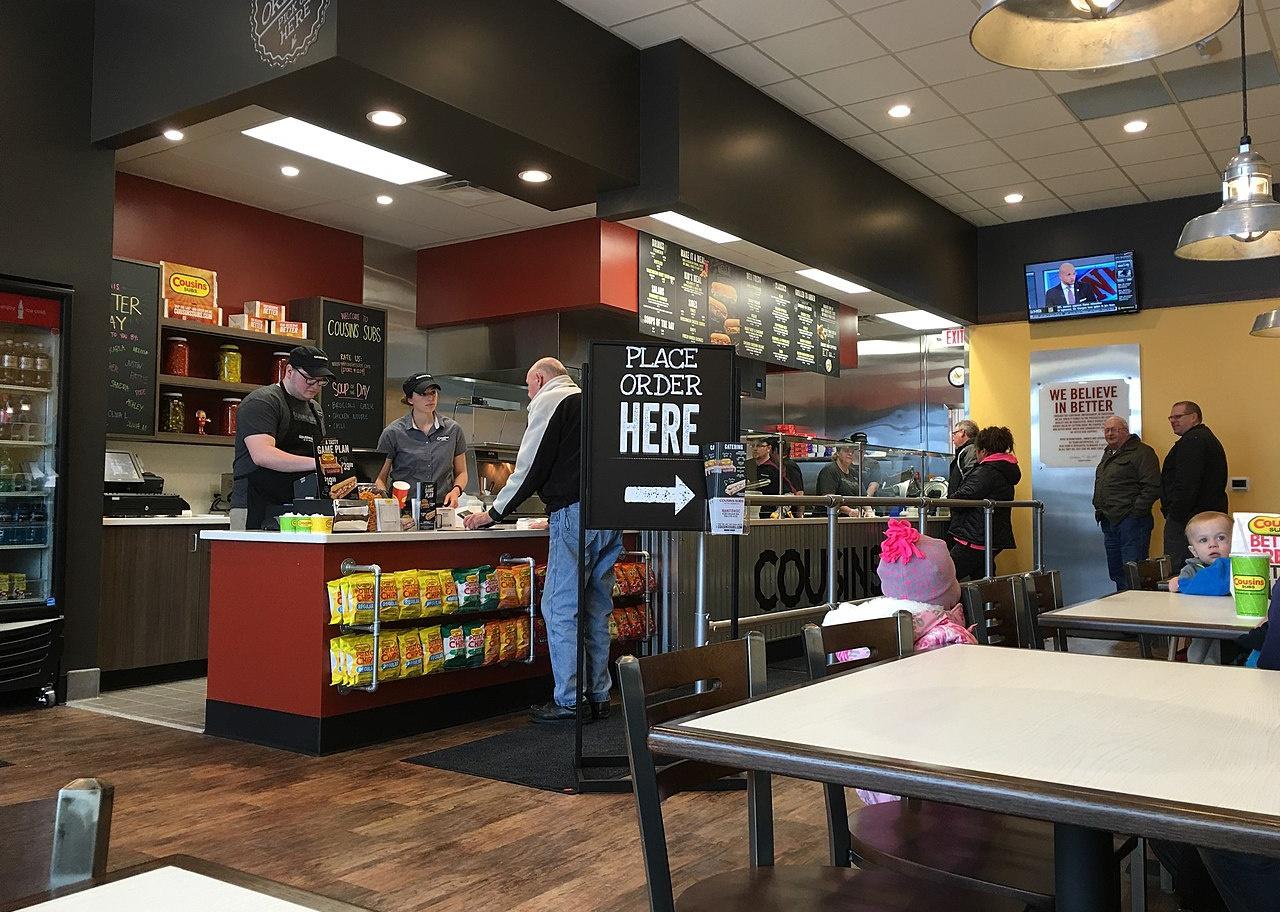 People in line ordering at a Cousins Subs location.