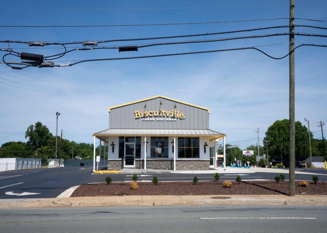 The exterior of a Biscuitville restaurant.
