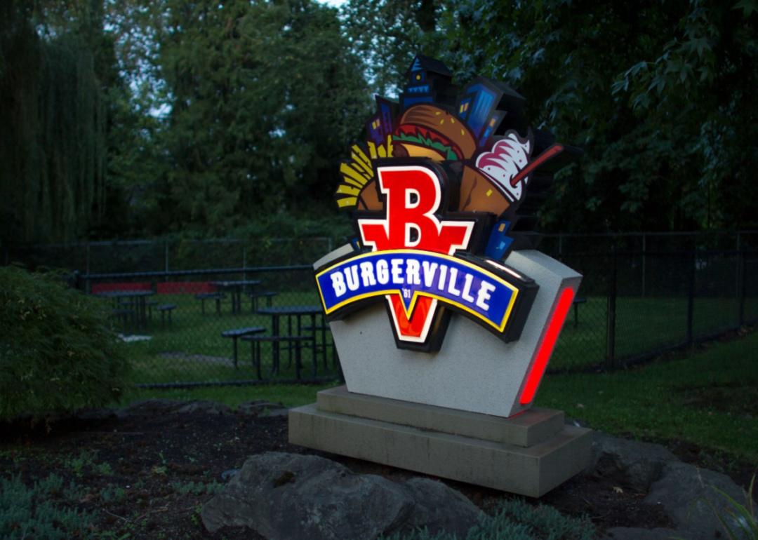 A colorful neon Burgerville sign.