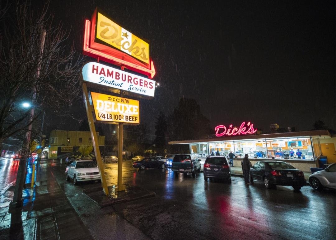 A Dick’s Drive-In at night.