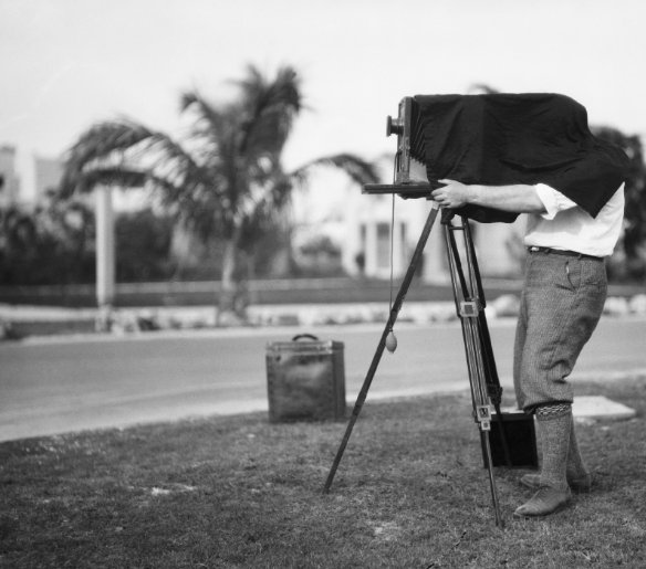 A photographer using a large-format vintage camera in Florida.