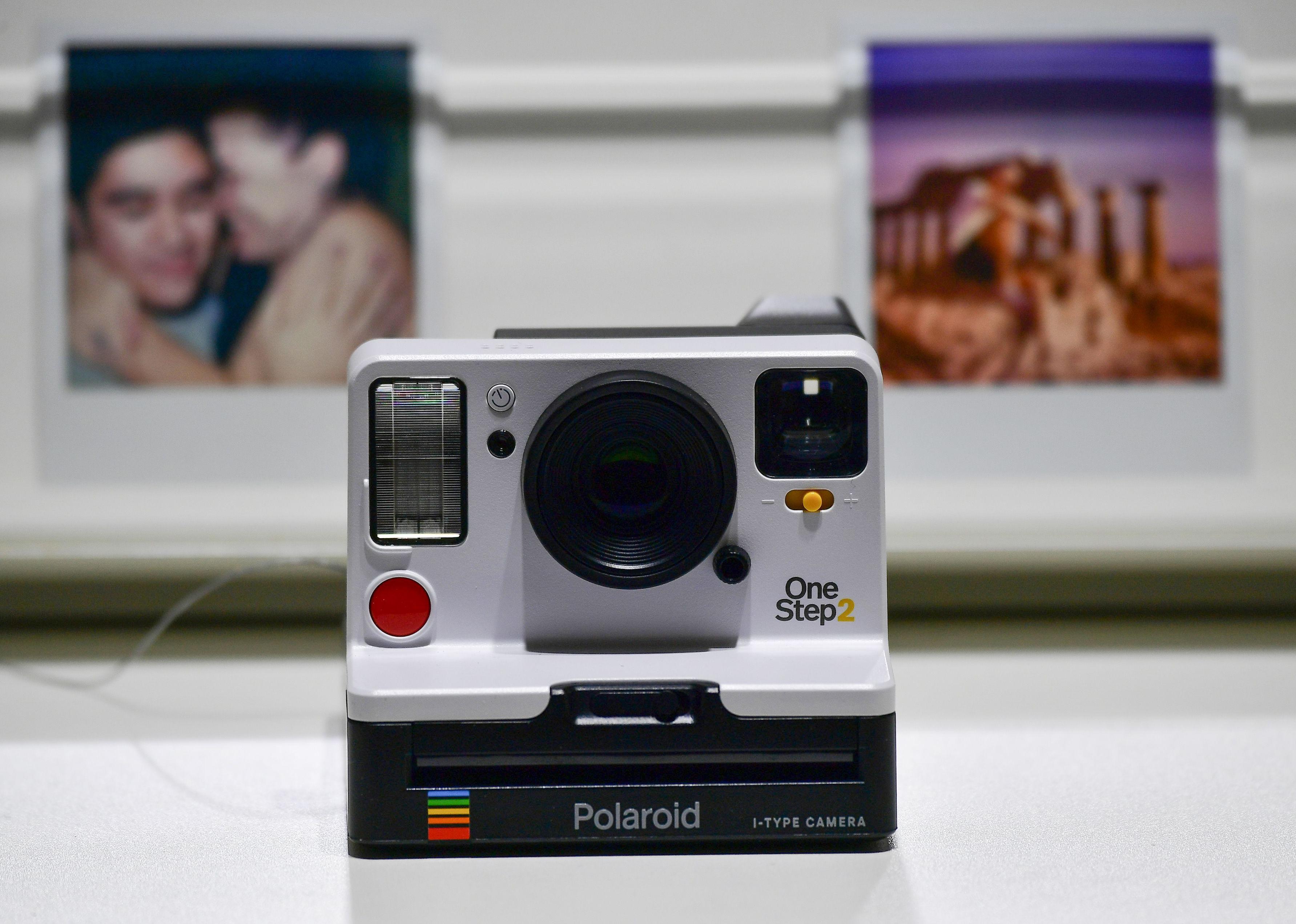 A Polaroid camera on display.