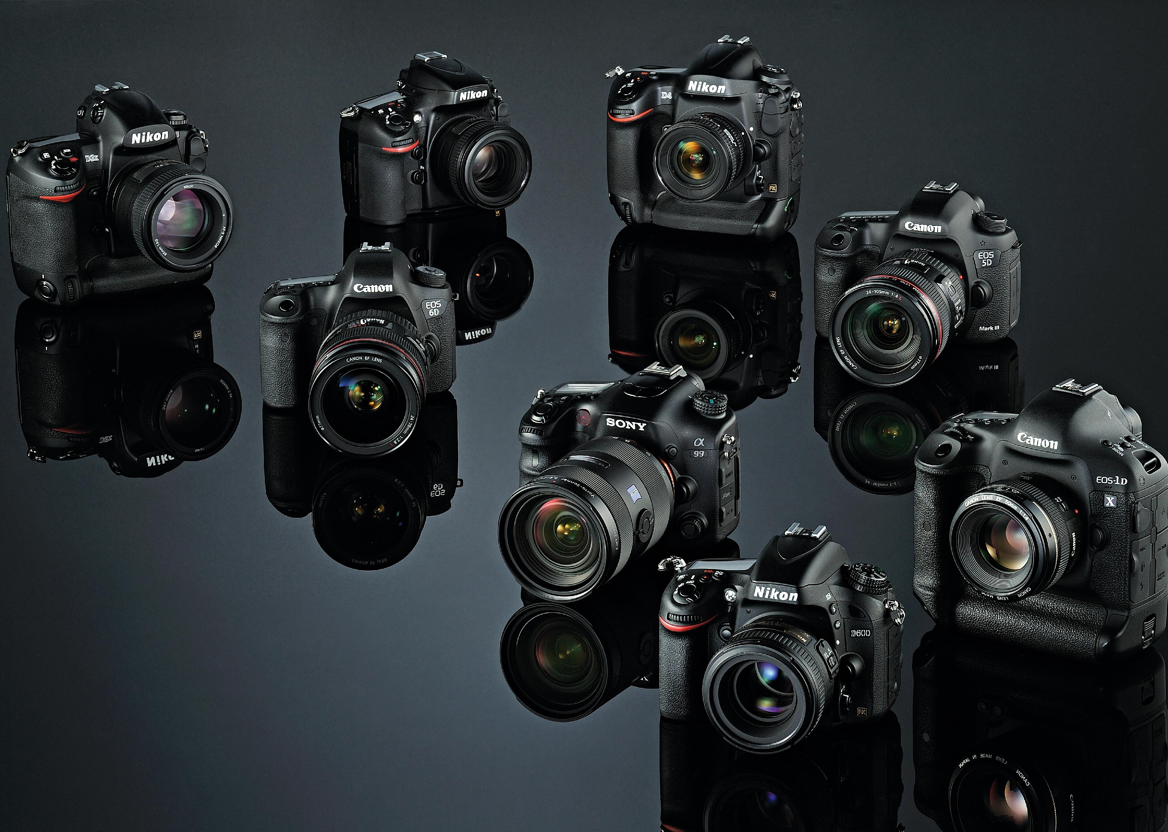 A selection of full-frame digital SLR’s including Nikon, Canon and Sony brands.