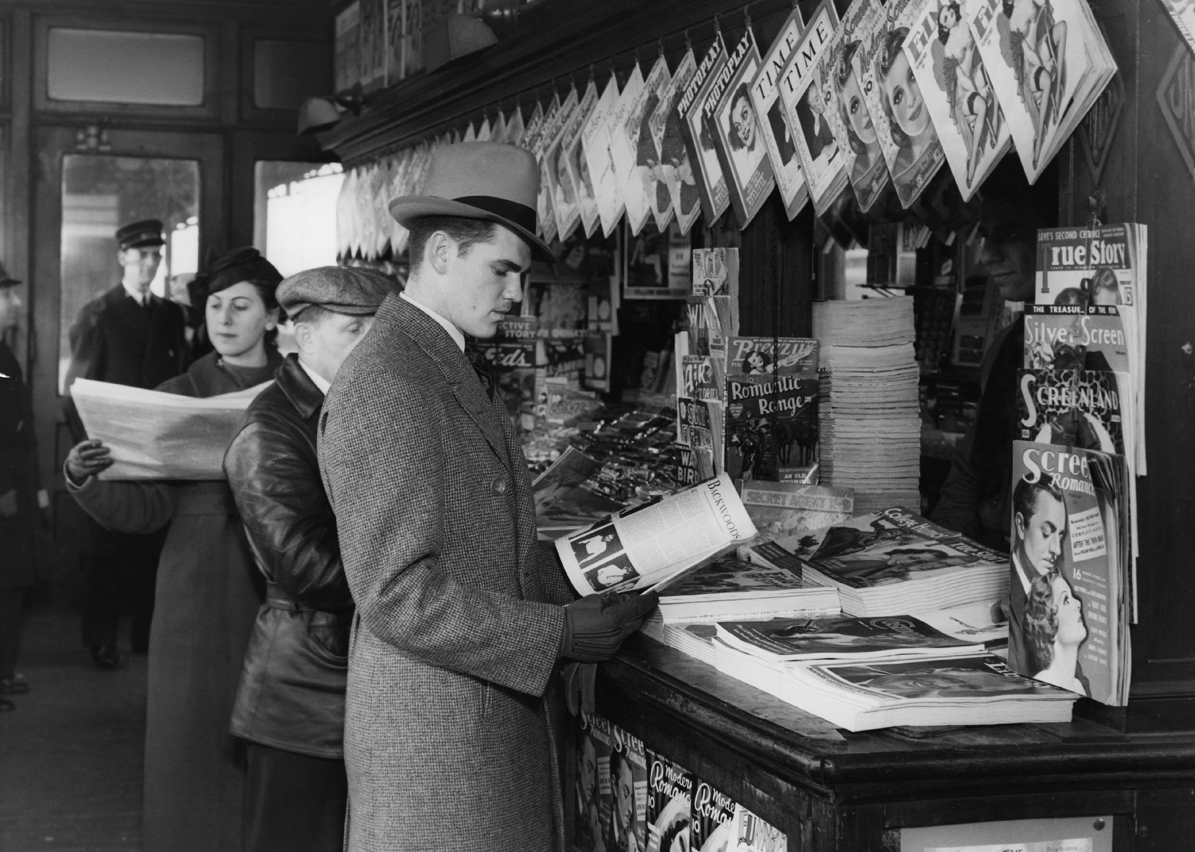Railroad Station News Stand in NYC in 1937.