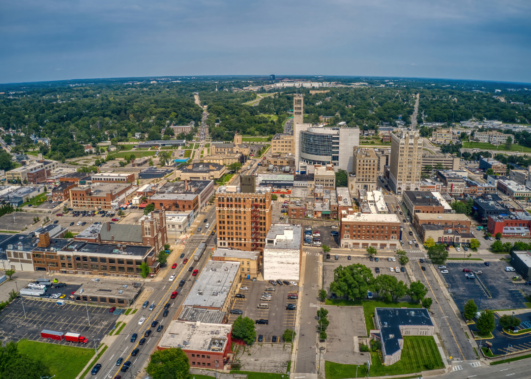 An aerial view of downtown Pontiac.
