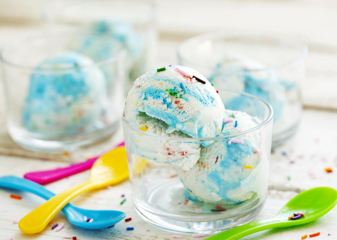 Bowl of colorful birthday cake ice cream.