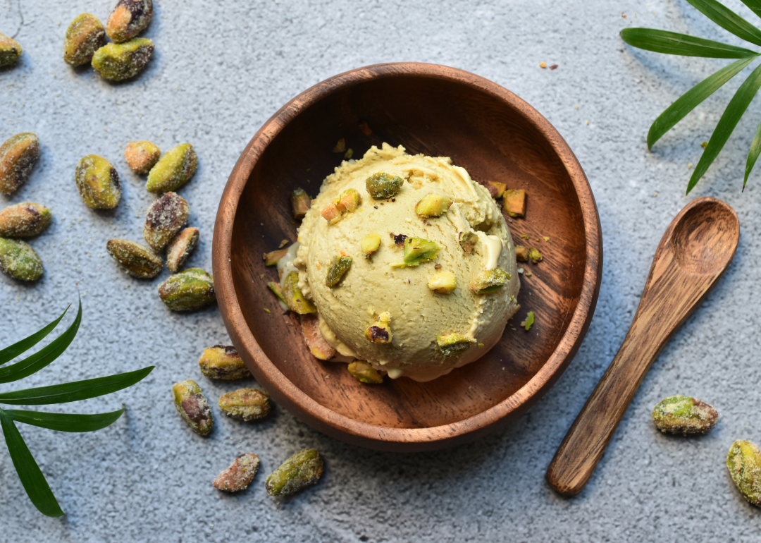 Pistachio ice cream originated in the Middle East but was popularized in the United States during the late 20th century. It’s nutty, smooth, and rich. Just scoop it onto a cone, add your favorite toppings, and enjoy.