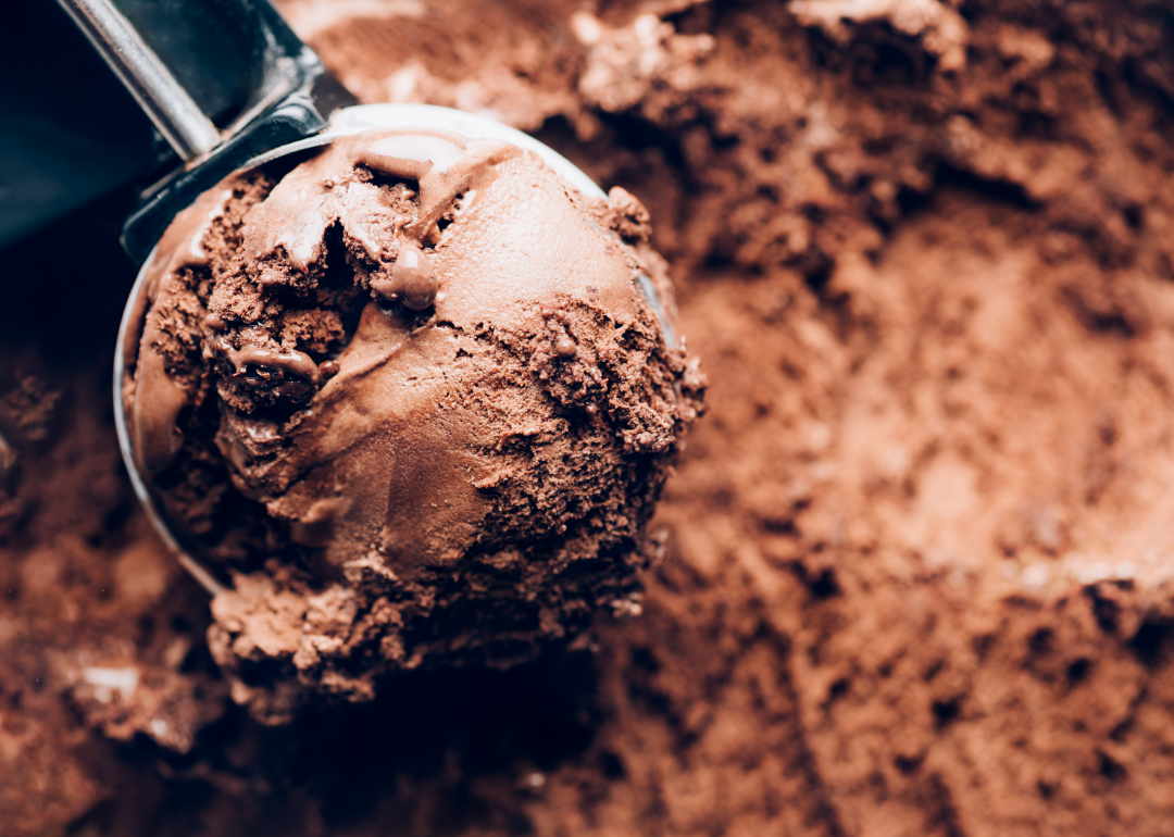 Close up scoop of chocolate ice cream.