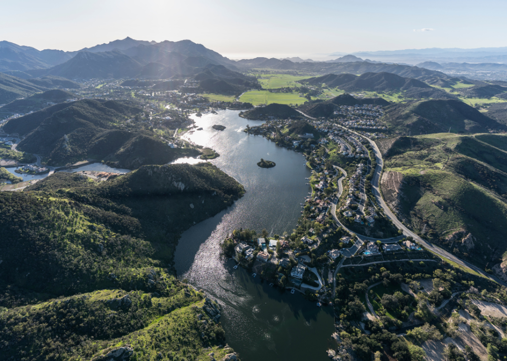 Aerial view of Lake Sherwood in Ventura County, California.