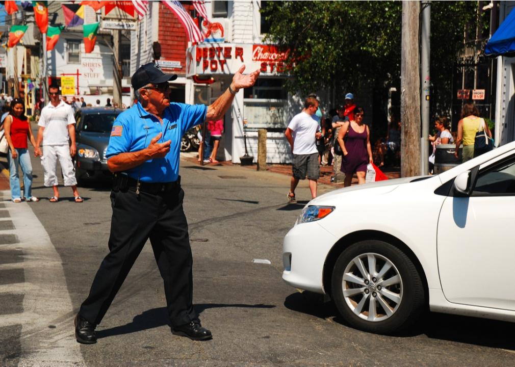 An officer directs traffic in Provincetown, Massachusetts.