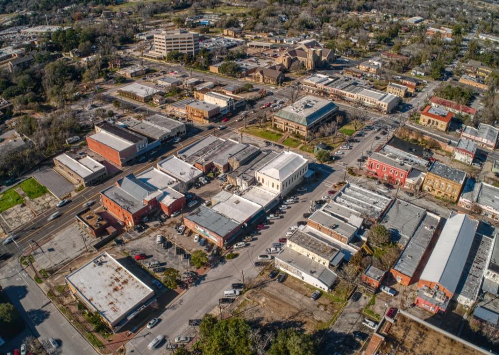 Aerial view of small town Huntsville, Texas.