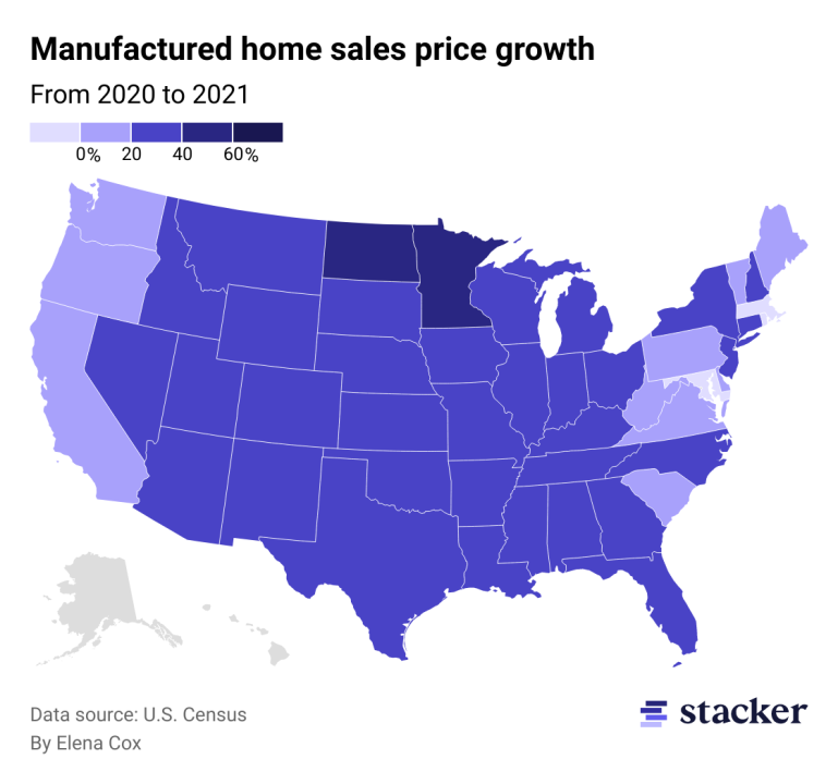 The cost of purchasing a manufactured home in the U.S. jumped the most in North Dakota and Minnesota, which respectively saw a 49% and 46% rise in prices.