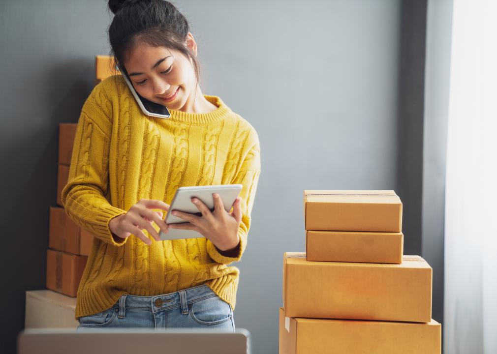 Business owner using smartphone or tablet
