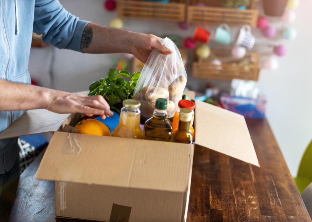 Man checking his food delivery from a box