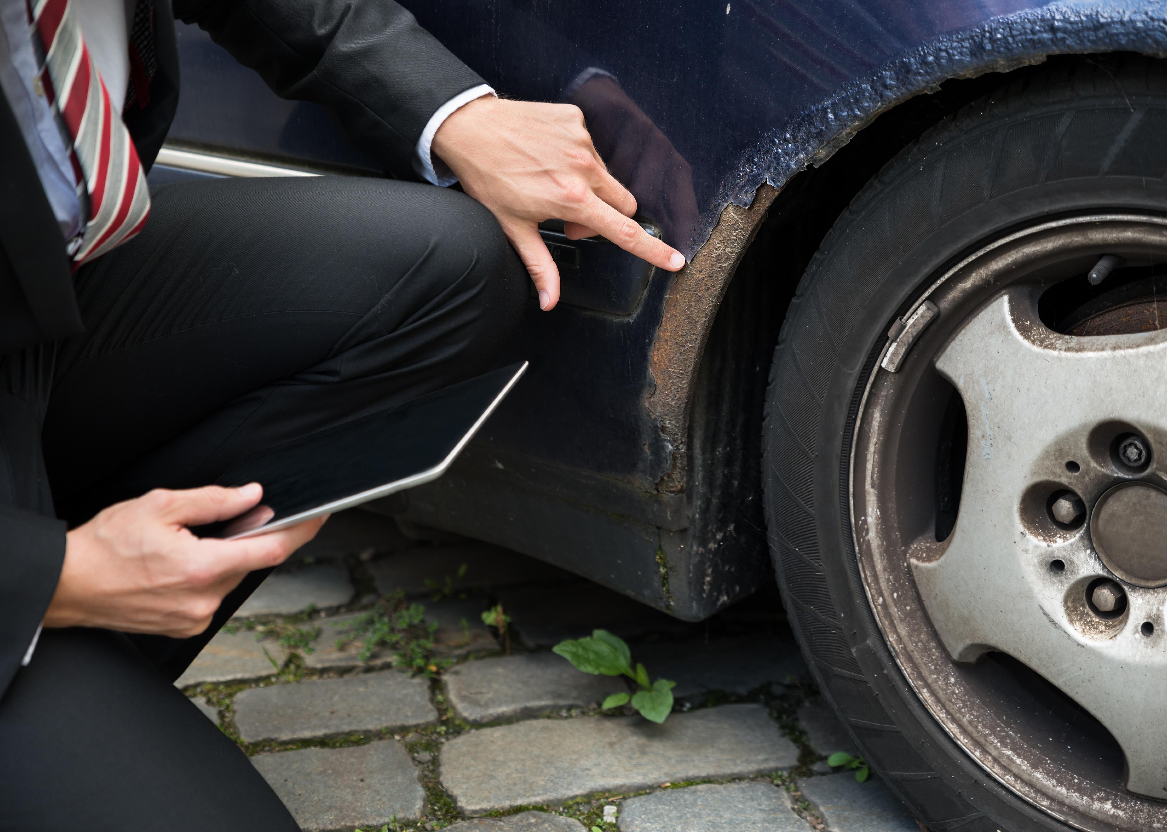 Man inspecting damage on a car