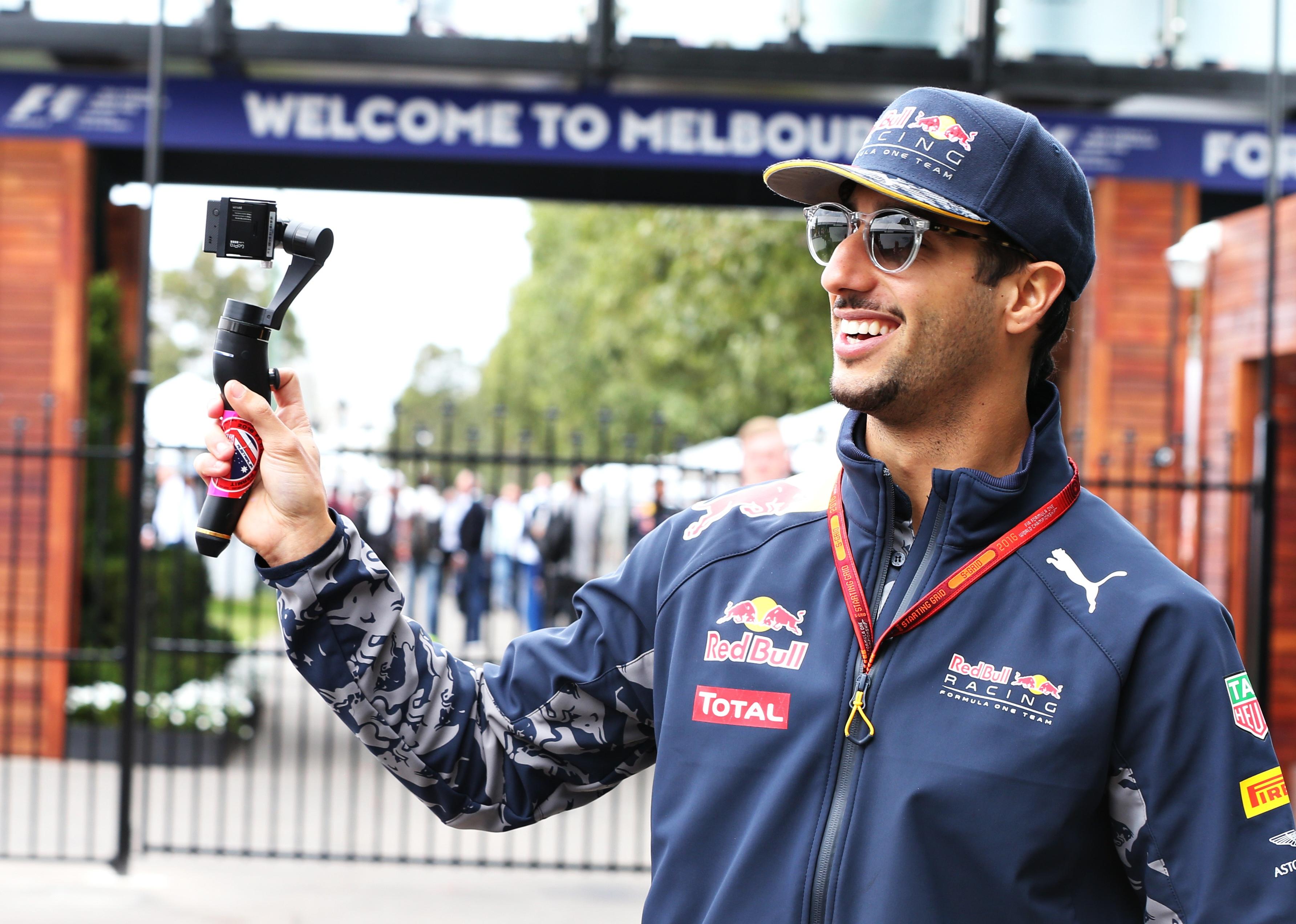 Daniel Ricciardo of Australia and Red Bull Racing with a GoPro camera during qualifying for the Australian Formula One Grand Prix.