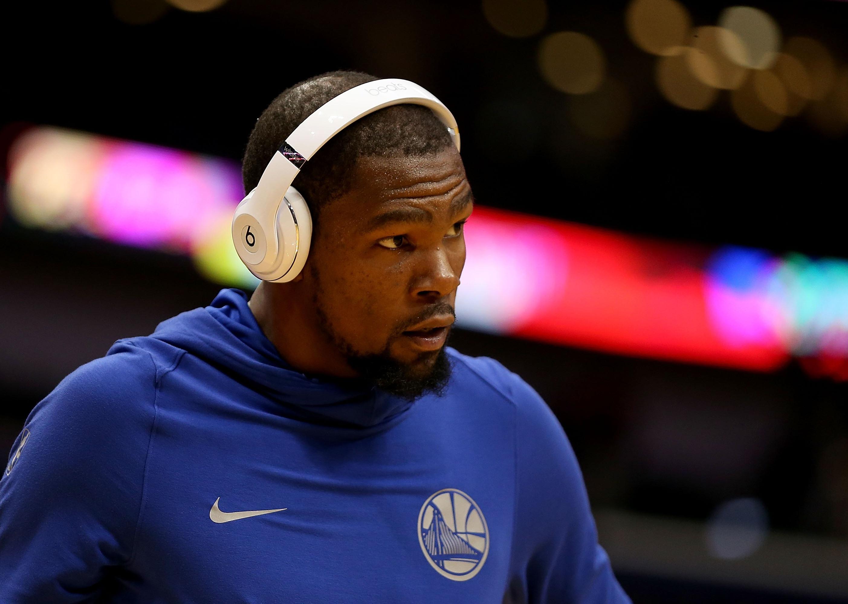 Kevin Durant of the Golden State Warriors wears a pair of Beats headphones.