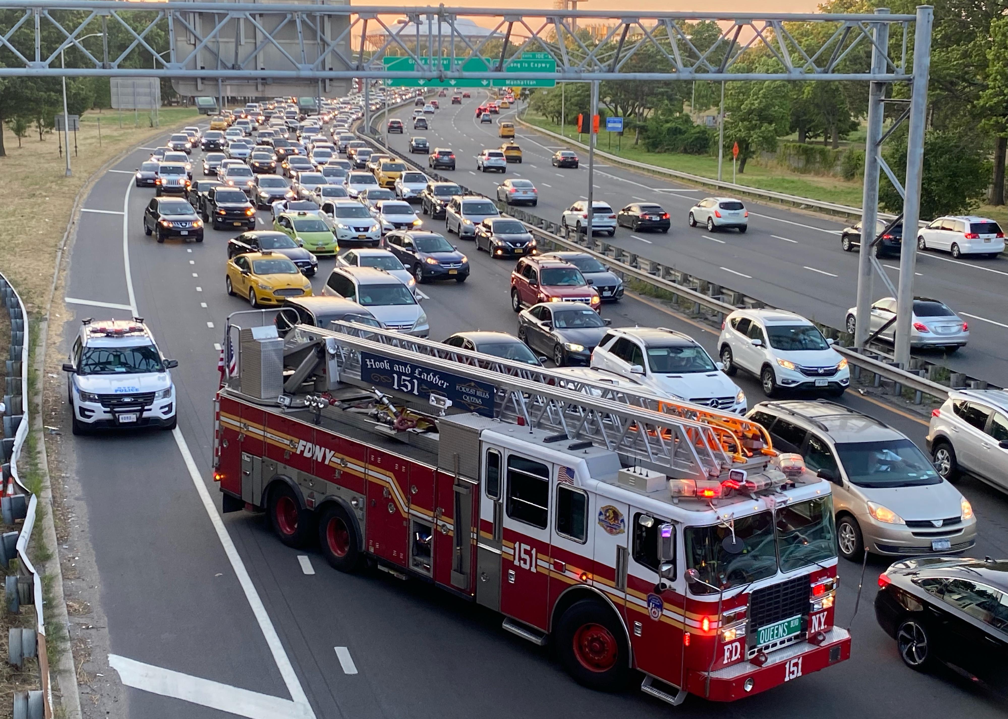 First responders to an accident blocking traffic.