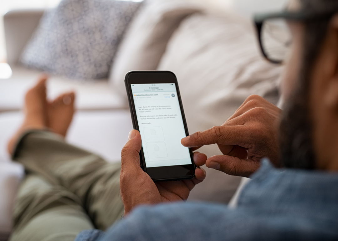 Man reading email on phone.