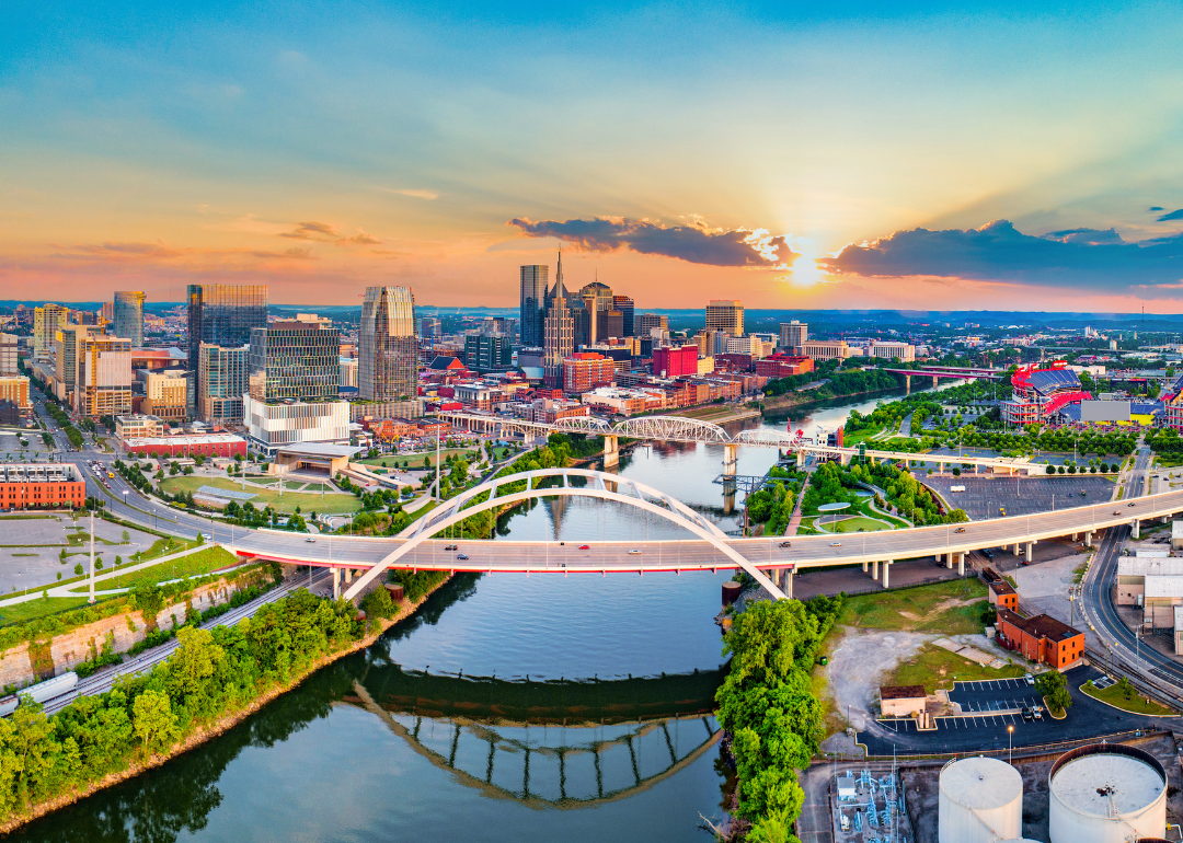 An aerial view of Nashville, Tennessee.