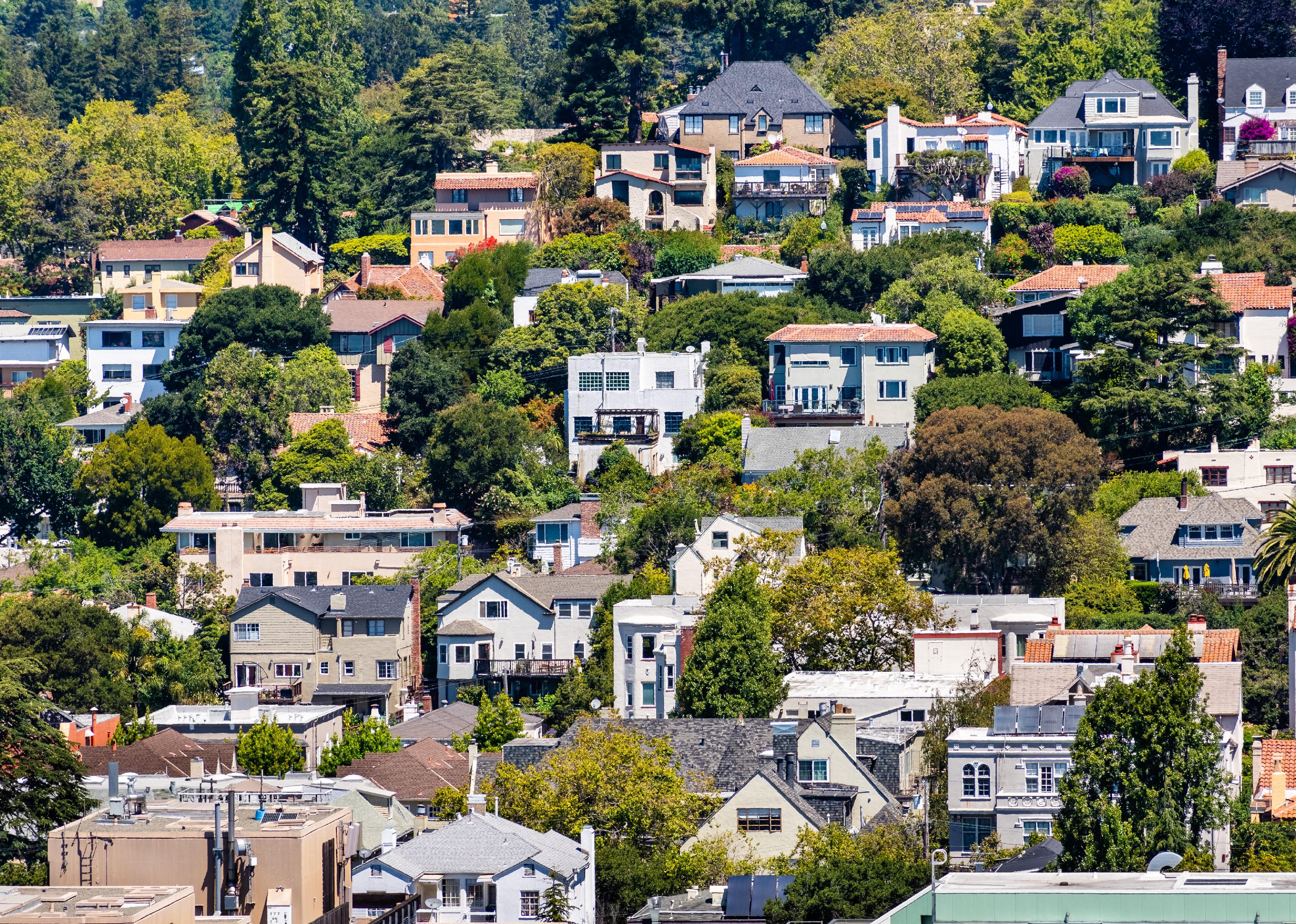 Aerial view of residential neighborhood Berkeley.