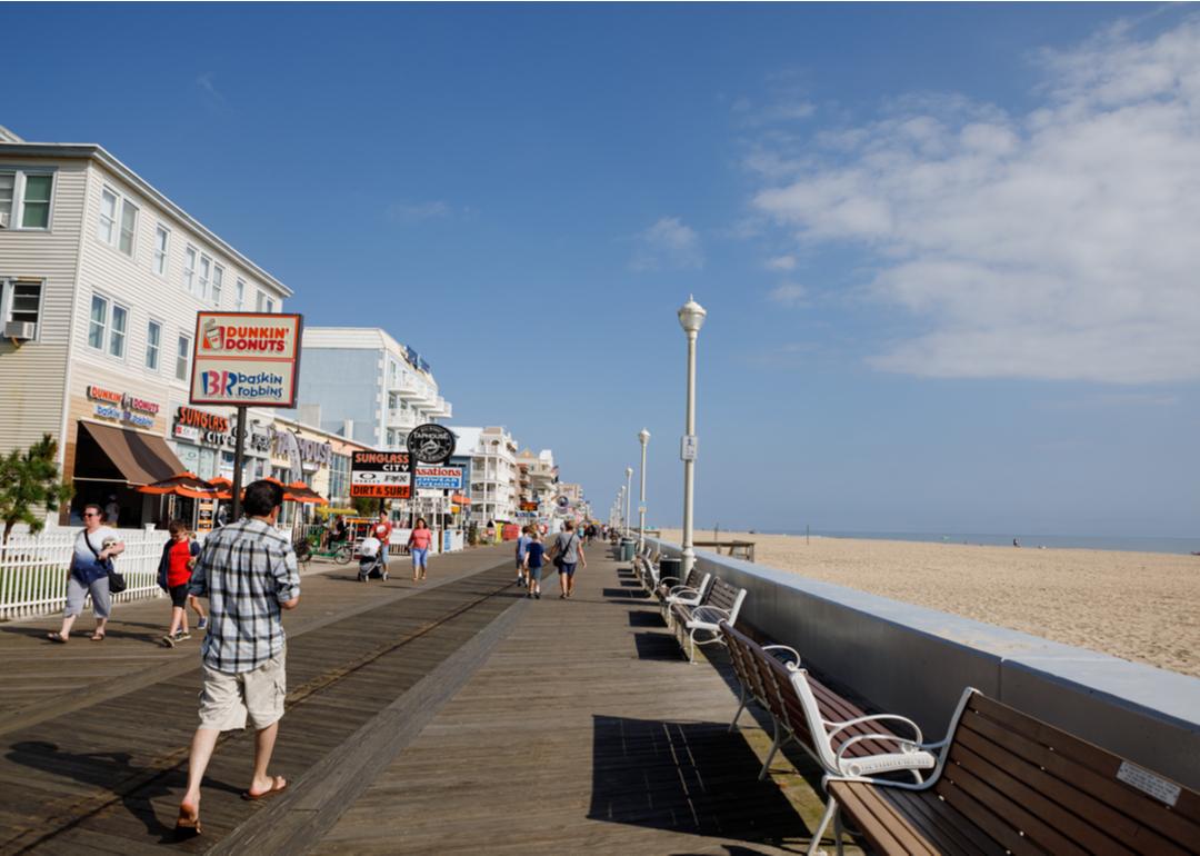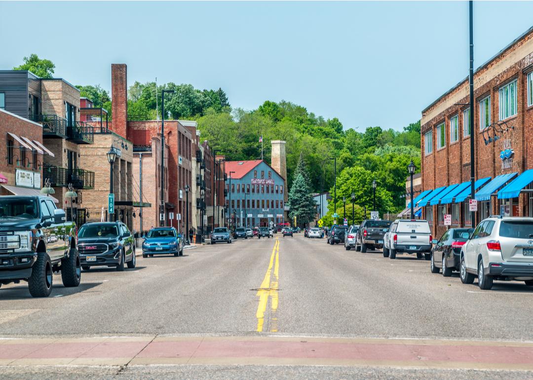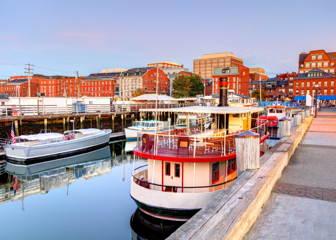 Building, boats, and docks at old harbor in Newport, Rhode Island.