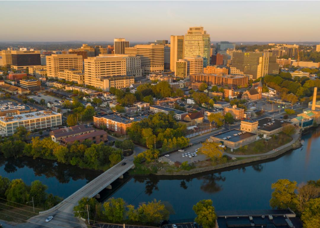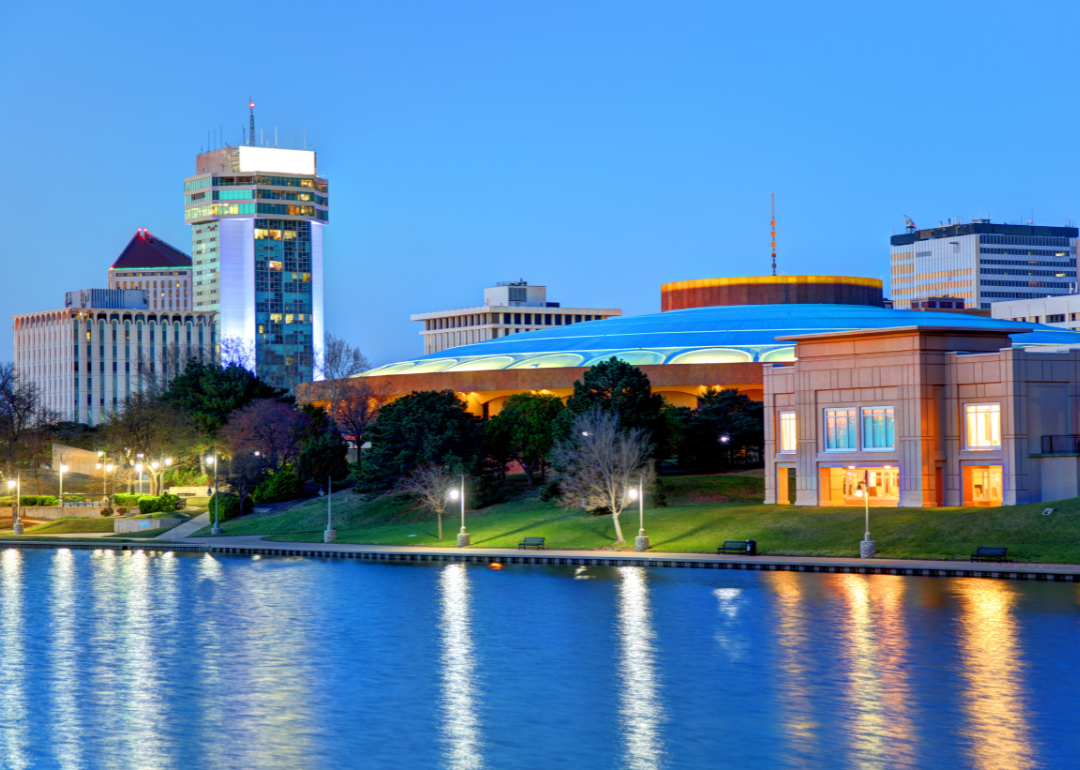 A view of Atlanta’s skyline from Lake Meer in Piedmont Park.