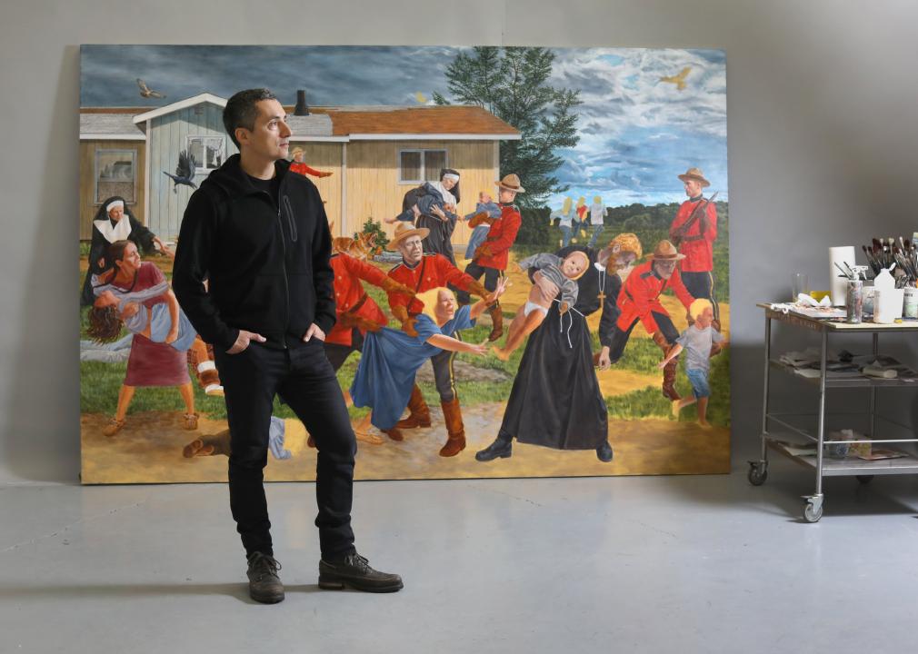 A creative visionary whose work has been commissioned by the Metropolitan Museum of Art, Kent Monkman is a Swampy Cree artist born in Canada. His work centers on the effects of Christianity on Indigenous communities. With solo exhibits across Canada and group exhibits throughout North America, Monkman’s impactful art challenges conventional depictions of his people by white artists like Paul Kane.