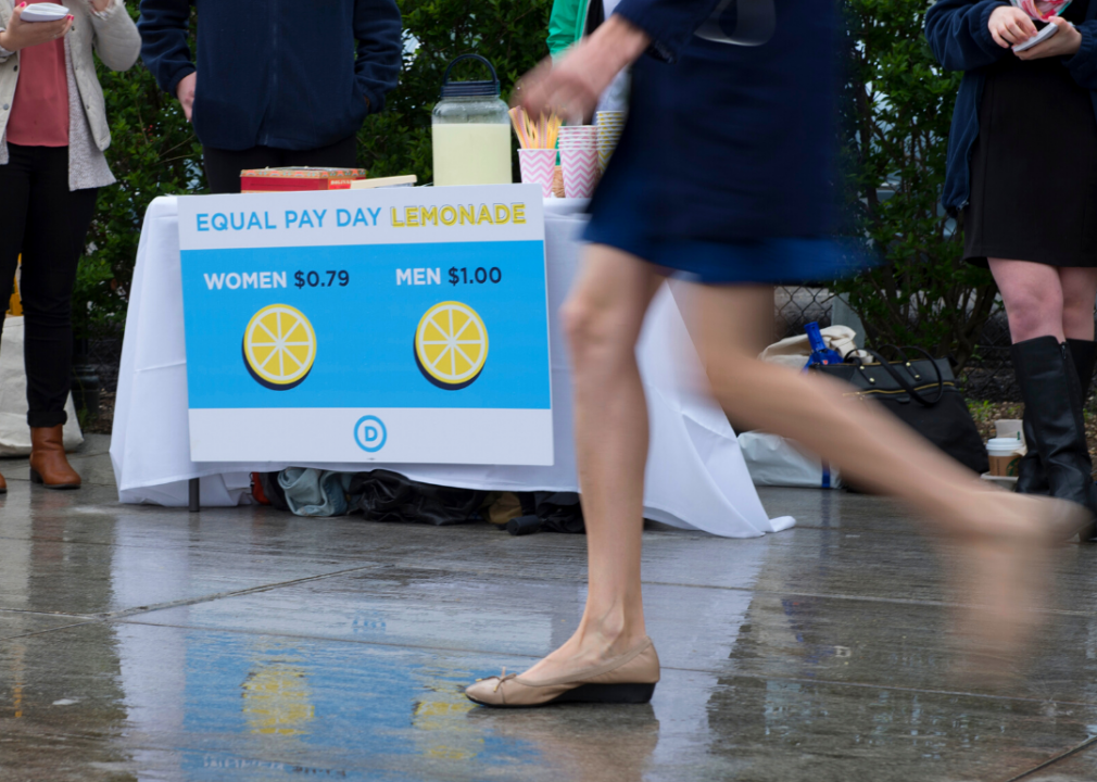 [Pictured: Democratic National Committee (DNC) women host an Equal Pay Day event with a lemonade stand “where women pay 79 cents per cup and men pay $1 per cup, to highlight the wage gap” on April 12, 2016, in Washington D.C.]